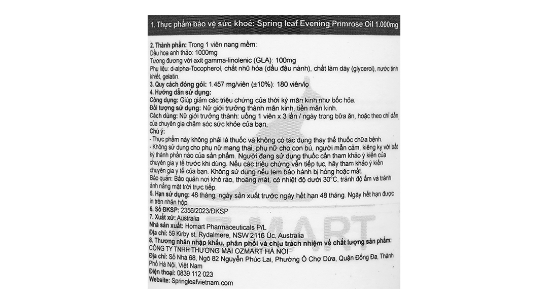 - Viên uống Evening Primrose Oil của hãng Spring Leaf là sản phẩm đến từ Úc, được chiết xuất từ dầu của hạt hoa anh thảo tự nhiên, sử dụng bằng công nghệ ép lạnh giúp giữ lại những dưỡng chất và vitamin quan trọng. Vì thế, sản phẩm có độ tinh khiết cao hơn, mang lại hiệu quả nhiều hơn cho người sử dụng.