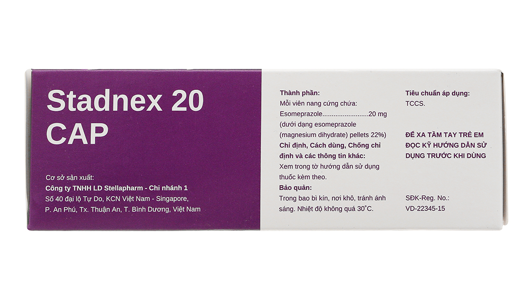 Esomeprazole 20 mg (dưới dạng esomeprazole (magnesium dihydrate) pellets 22%).