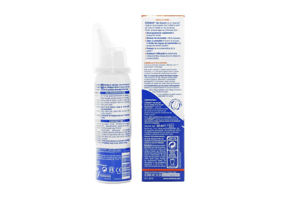 Sterimar nhờ có hệ thống phun sương vi hạt, cho phép nhẹ nhàng rửa sạch từng ngóc ngách của hốc mũi.