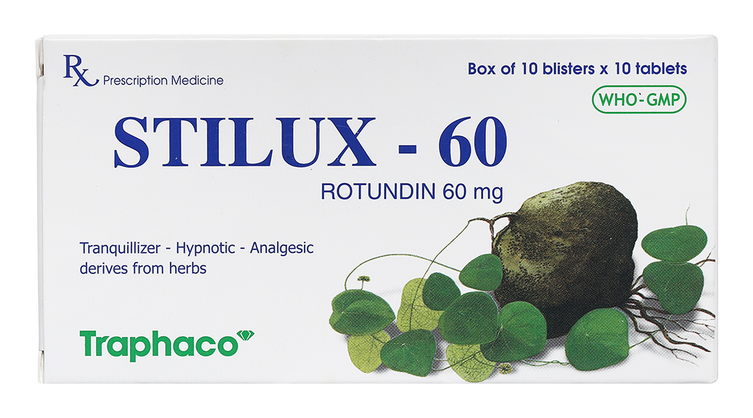 Hoạt chất của Stilux – 60 là Rotundin được chiết xuất từ củ Bình vôi (Stephannia rotunda Lour.), một loại thảo dược mọc hoang ở các vùng núi Việt Nam, Trung Quốc… Nó được sử dụng từ lâu trong dân gian dạng dịch chiết hỗn hợp, nay đã được nghiên cứu đầy đủ về cấu trúc hóa học, tính chất vật lý, độc tính, dược lý học và ứng dụng trên lâm sàng. Kết quả các công trình nghiên cứu của Nga, Trung Quốc, Nhật Bản và Việt Nam đã chứng minh: