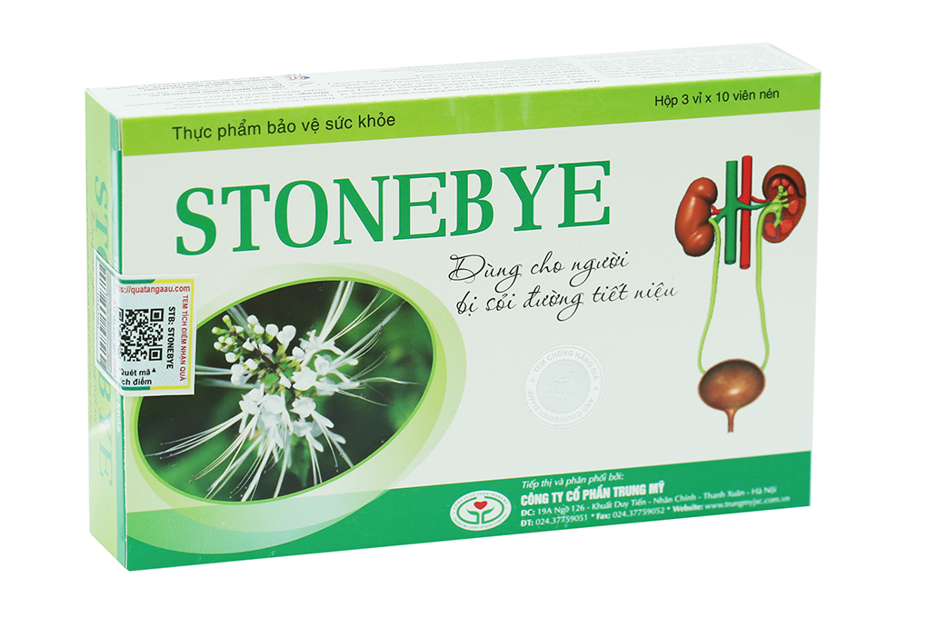 - Mỗi thành phần trong viên uống Stonebye khi được nghiên cứu về công dụng và tính toán hàm lượng một cách kỹ lưỡng thì đây chính là một giải pháp hỗ trợ tốt đối với các bệnh lý sỏi đường tiết niệu (bao gồm sỏi thận, sỏi niệu quản, sỏi bàng quang, sỏi niệu đạo) và viêm đường tiết niệu. Từ khi có mặt trên thị trường đến nay, sản phẩm nhận được nhiều đánh giá tích cực từ chuyên gia tiết niệu hàng đầu về hiệu quả và tính an toàn.