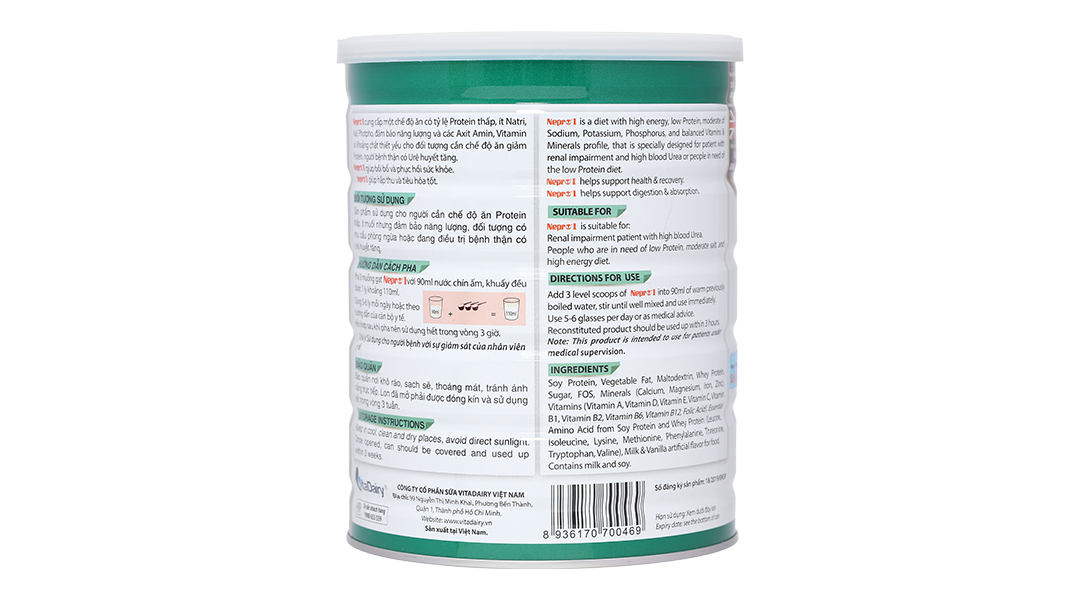 Sữa bột Nepro 1 bổ sung dinh dưỡng cho người bệnh thận tăng ure huyết (900g)