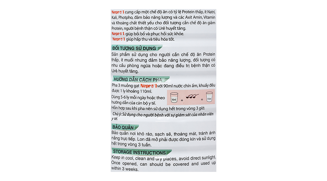 Đối tượng sử dụngNgười cần chế độ ăn Protein thấp, ít muối; người cần phòng ngừa/điều trị bệnh thận