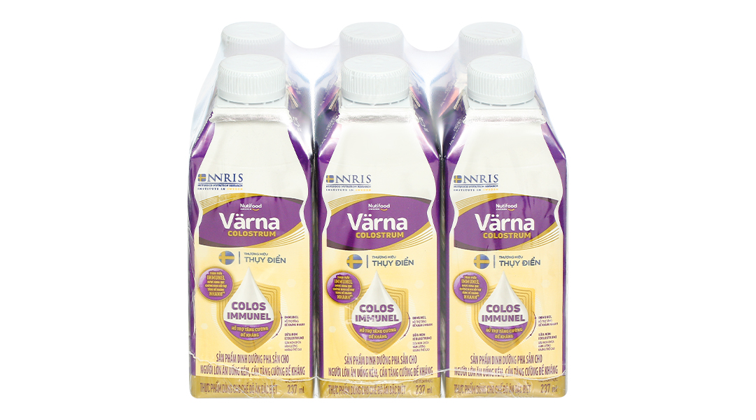 - Sữa Bột Pha Sẵn Varna Colostrum 237ml – Colos Immunel được phát triển và nghiên cứu bởi NNRIS (Viện Nghiên cứu Dinh Dưỡng Nutifood Thụy Điển).