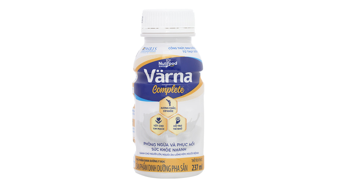 Thực phẩm dinh dưỡng y học Varna Complete được sản xuất 100% tại Thụy Điển dưới sự giám sát chặt chẽ bởi Viện Nghiên Cứu Dinh Dưỡng Nutifood Thụy Điển – NNRIS. Với hơn 20 năm am hiểu sâu sắc dinh dưỡng đặc thù tại Việt Nam từ các chuyên gia dinh dưỡng Nutifood, kết hợp với các chuyên gia dinh dưỡng Thụy Điển, Värna Complete được sản xuất với công thức chuyên biệt FRP(*) hỗ trợ phục hồi nhanh và phòng ngừa các vấn đề sức khỏe; giúp xương chắc, cơ khỏe; tốt cho tim mạch và hỗ trợ trí nhớ.