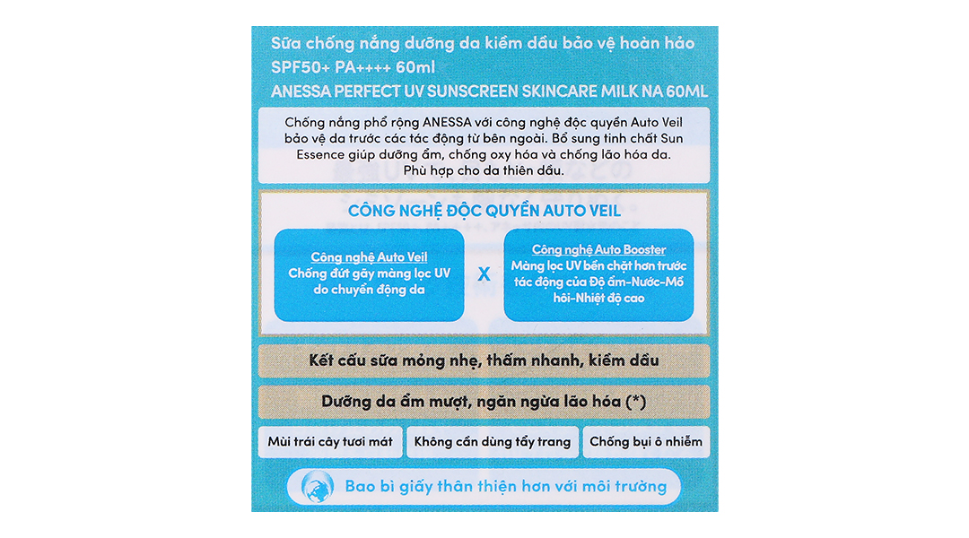 Công dụngChống nắng phổ rộng, giúp dưỡng ẩm, chống oxy hóa và chống lão hóa da