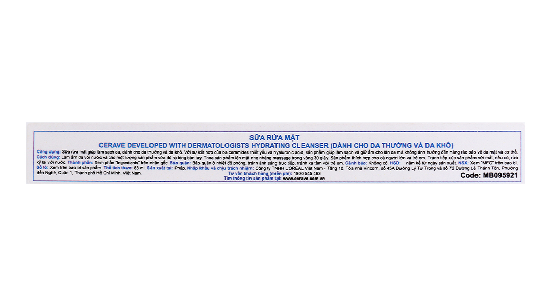 Sữa rửa mặt CeraVe Hydrating Cleanser sạch sâu cho da thường và da khô chai 88ml