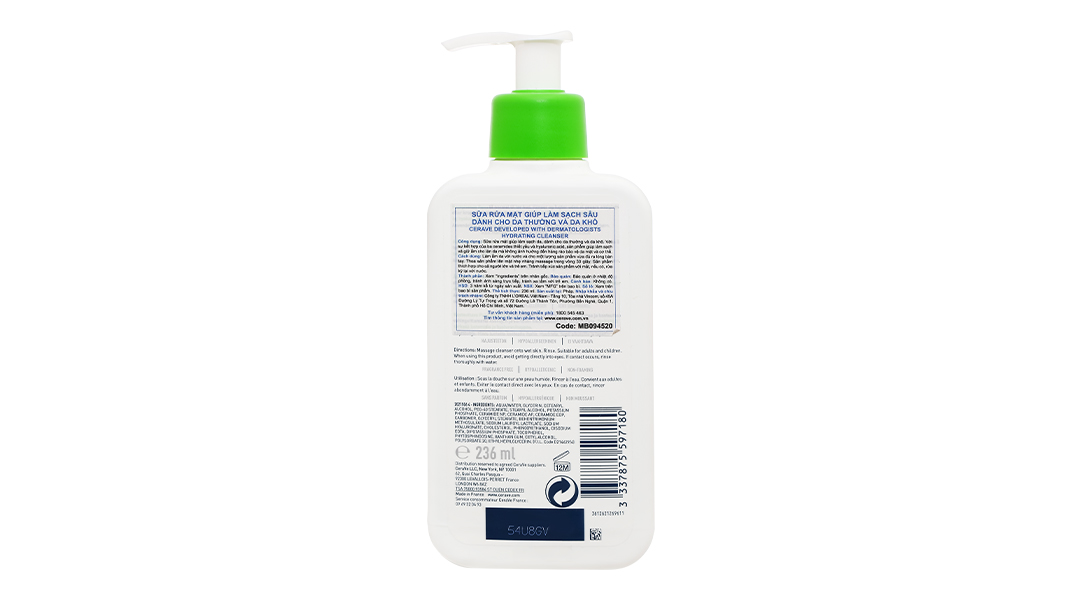 Công dụngNhẹ nhàng loại bỏ bụi bẩn, dầu và lớp trang điểm mà không làm da căng hoặc khô