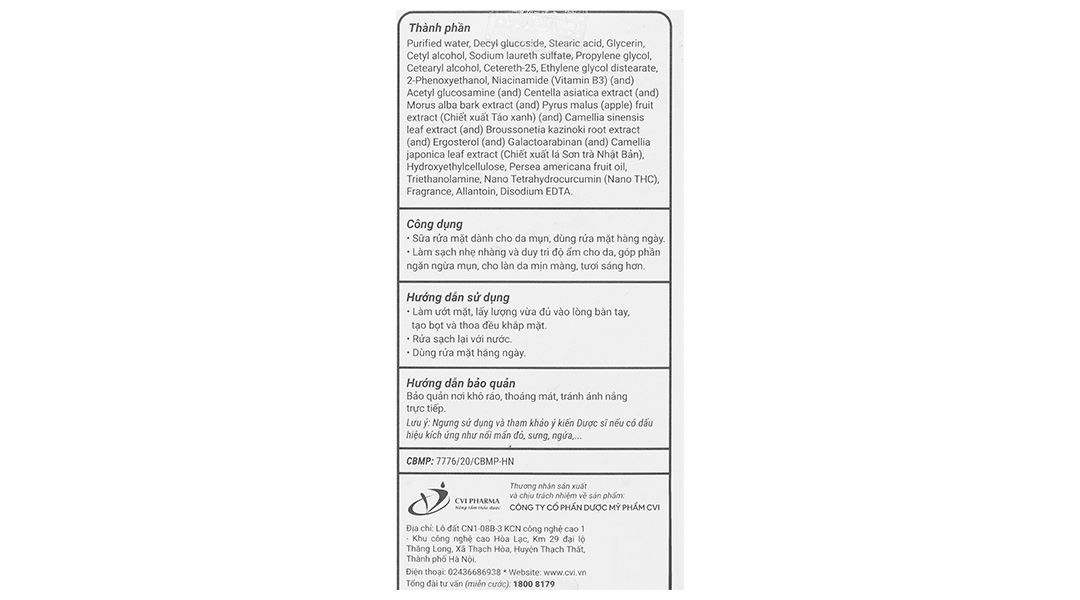 Nhà sản xuấtCông ty Cổ phần Dược Mỹ Phẩm CVI