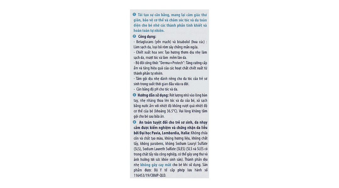 Thành phầnBetaglucans (yến mạch) và bisabolol (hoa cúc), chiết xuất hoa sen.