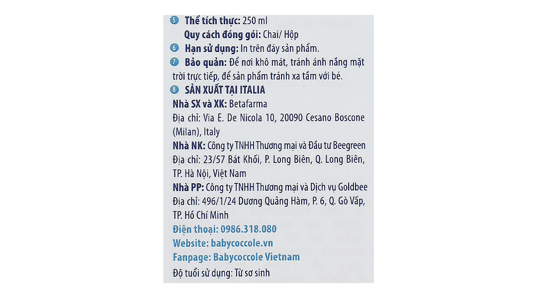 Đối tượng sử dụngTrẻ sơ sinh trở lên