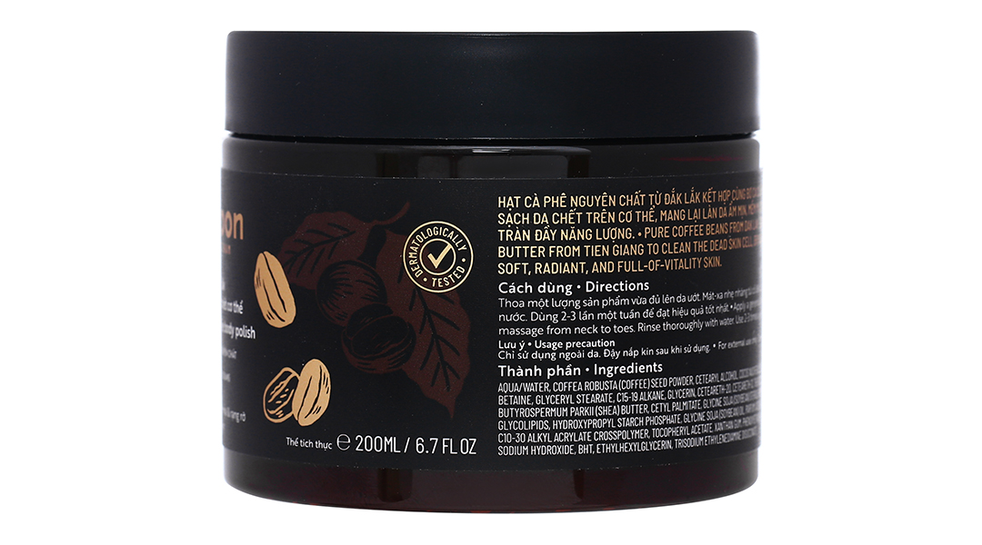 Tẩy tế bào chết Cocoon hạt cà phê làm sạch da chết cơ thể hũ 200ml