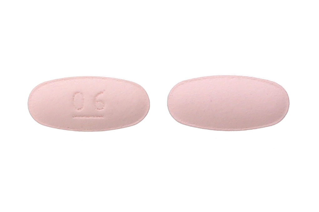 Viên nén bao phim, màu hồng nhạt, hình oval, hai mặt lồi, một mặt trơn, mặt kia khắc số “06“.