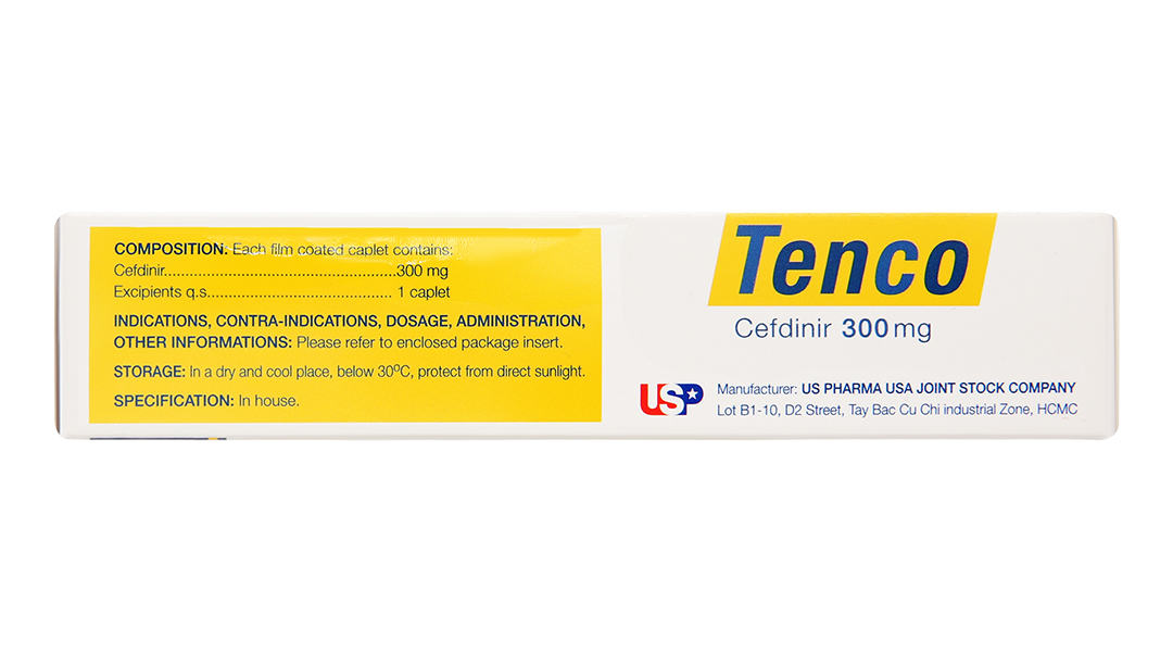 - Dược chất chính của thuốc TENCO là cefdinir, có hoạt tính trên nhiều loại vi khuẩn Gram dương và Gram âm.