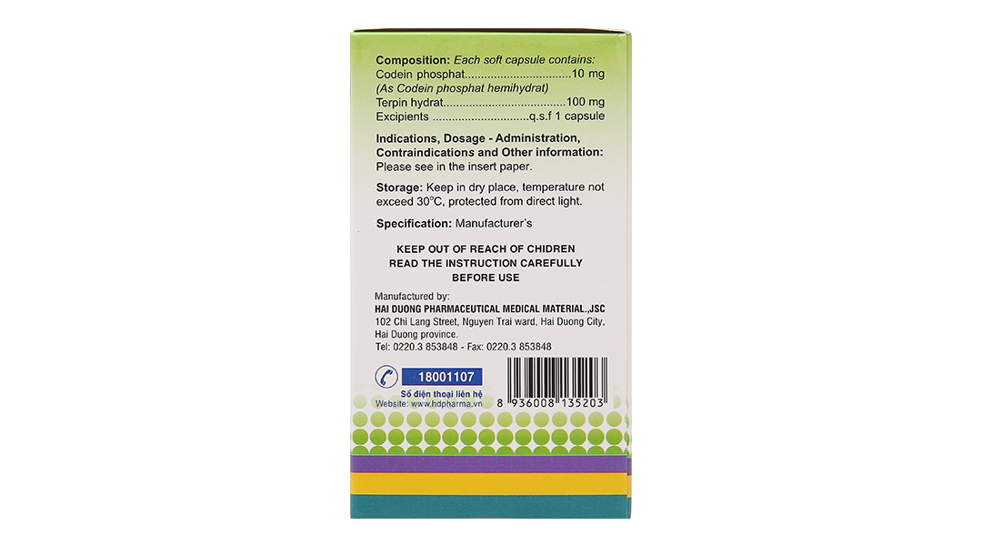 Hoạt chất: Codein phosphat (Dưới dạng Codein phosphat hemihydrat) 10 mg, Terpin hydrat 100 mg.