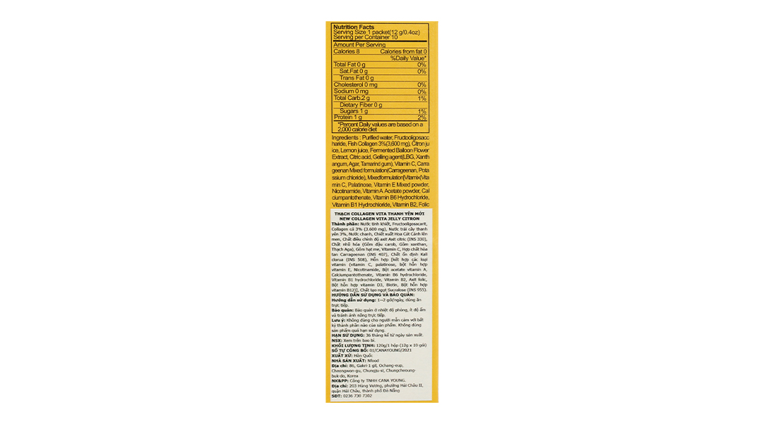 Thạch Collagen Vita Thanh Yên Mới là một sản phẩm chăm sóc sắc đẹp và sức khỏe từ thương hiệu Cana Young nổi tiếng, mang đến giải pháp toàn diện cho làn da, tóc và móng khỏe mạnh. Với 3.600mg collagen mỗi gói, sản phẩm cung cấp một lượng collagen dễ hấp thụ vào cơ thể, giúp bổ sung và tái tạo mô liên kết, từ đó duy trì độ đàn hồi cho da, tăng cường sự chắc khỏe cho tóc và móng. Collagen cá là nguồn collagen được biết đến với khả năng hấp thụ nhanh và hiệu quả, mang lại tác dụng nhanh chóng và rõ rệt cho người dùng.