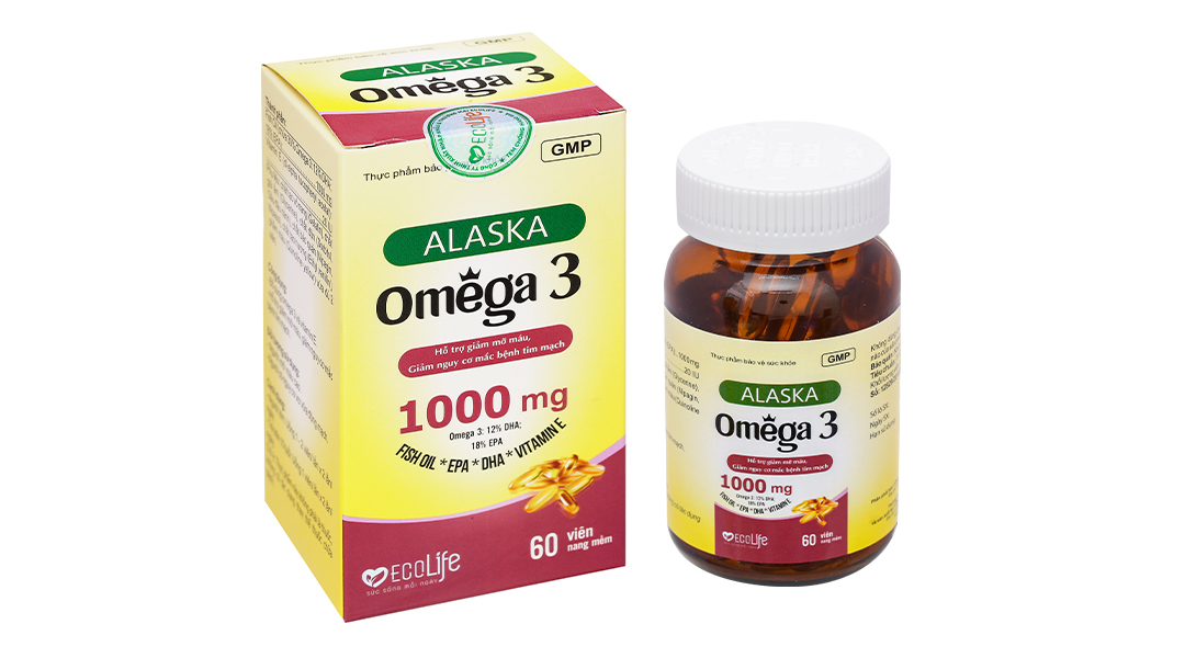 Dầu cá Ecolife Alaska Omega 3 hỗ trợ giảm mỡ máu, giảm nguy cơ bệnh tim mạch hộp 60 viên