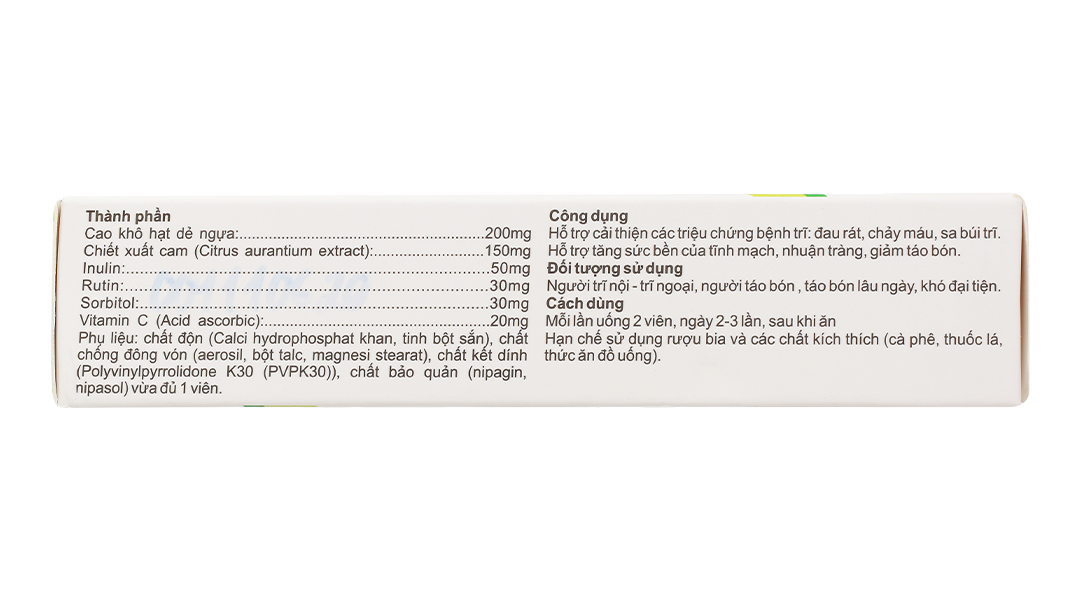 Hỗ trợ cải thiện các triệu chứng bệnh trĩ: đau rát, chảy máu, sa búi trĩ.