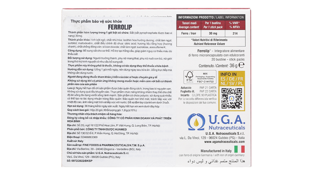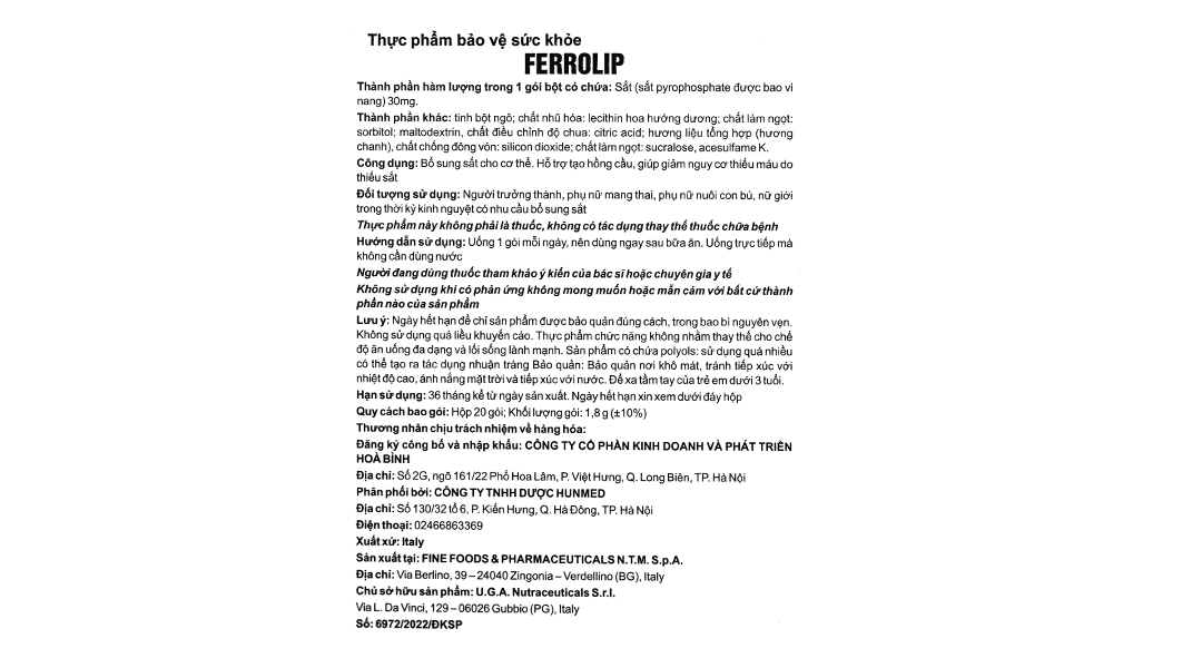- Ferrolip được nhập khẩu từ Italia (Ý), yên tâm về nguồn gốc, chất lượng sản phẩm.