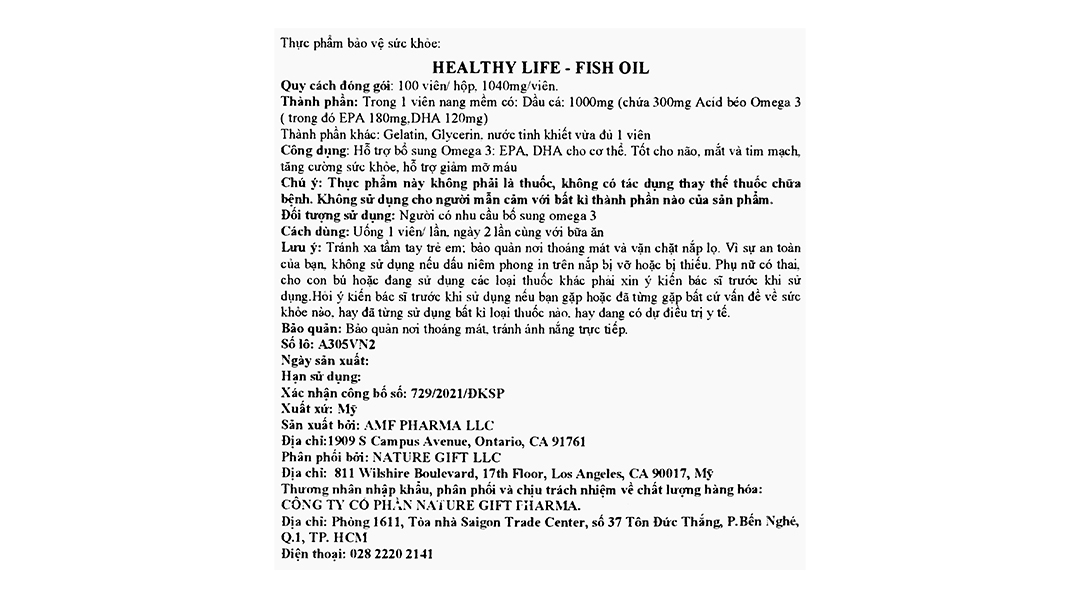 - Dầu cá Healthy Life là sản phẩm bổ sung Omega 3 giúp cải thiện chức năng não bộ, thị lực, sức khỏe tim mạch và duy trì mức cholesterol ổn định. Mỗi viên nang mềm Dầu cá Healthy Life chứa 1000mg dầu cá bao gồm EPA và 120mg DHA. Đây là hai loại acid béo thiết yếu không thể tự tổng hợp trong cơ thể nhưng lại đóng vai trò vô cùng quan trọng trong việc duy trì hoạt động của các bộ phận quan trọng như não, mắt và tim.