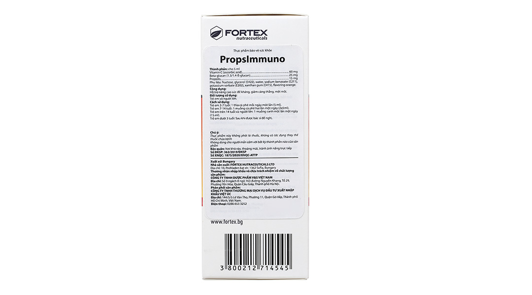 - Siro PropsImmuno là một giải pháp tuyệt vời giúp bạn duy trì sức khỏe mạnh mẽ, vượt qua mệt mỏi và căng thẳng, đặc biệt trong những thời điểm cơ thể cần hỗ trợ nhất. Với công thức kết hợp Vitamin C, Beta-glucan và Keo ong, sản phẩm không chỉ giúp nâng cao sức đề kháng mà còn bảo vệ cơ thể khỏi các yếu tố gây bệnh từ môi trường bên ngoài. Vitamin C, nổi tiếng với khả năng tăng cường hệ miễn dịch và bảo vệ tế bào khỏi sự tấn công của các gốc tự do, sẽ giúp bạn luôn cảm thấy khỏe mạnh và tràn đầy năng lượng. Beta-glucan, một hợp chất tự nhiên có khả năng kích thích và củng cố sức mạnh của hệ thống miễn dịch, giúp cơ thể bạn chủ động phòng ngừa và chống lại các tác nhân gây hại. Keo ong, một sản phẩm quý giá từ thiên nhiên, với các đặc tính kháng khuẩn, kháng viêm, sẽ hỗ trợ cơ thể trong việc phục hồi nhanh chóng và duy trì sức khỏe tối ưu.