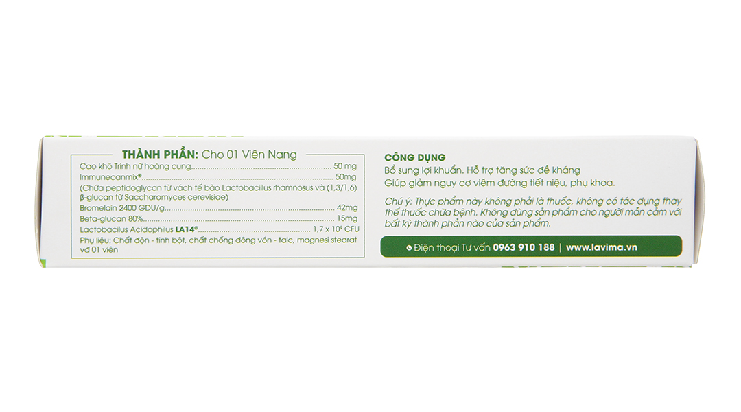 (Chứa peptidoglycan từ vách tế bào Lactobacillus rhamnosus và (1,3/1,6) β-glucan từ Saccharomyces cerevisiae)