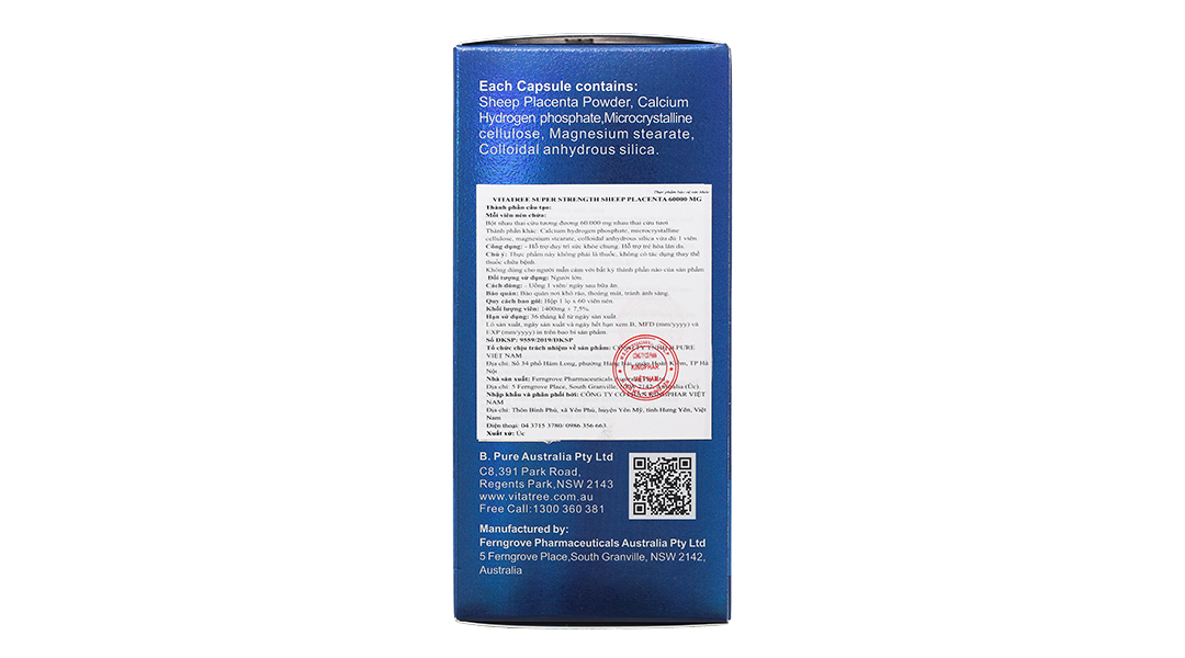 Vitatree Sheep Placenta 60000mg là một trong những sản phẩm của thương hiệu Vitatree, thương hiệu thực phẩm chức năng nổi tiếng tại Úc. Với chất lượng đã được khẳng định tại nhiều quốc gia trên thế giới như Việt Nam, Hàn Quốc, Trung Quốc, Thái Lan,… Vitatree là lựa chọn hàng đầu của những ai tìm kiếm giải pháp chăm sóc sức khỏe và làm đẹp toàn diện. Tất cả các sản phẩm của Vitatree đều được sản xuất và đóng gói tại những nhà máy đạt chuẩn cGMP, được kiểm soát chặt chẽ bởi Cục Quản lý Hàng hóa Trị liệu Úc, đảm bảo mỗi sản phẩm không chỉ an toàn mà còn mang lại hiệu quả cho người sử dụng.