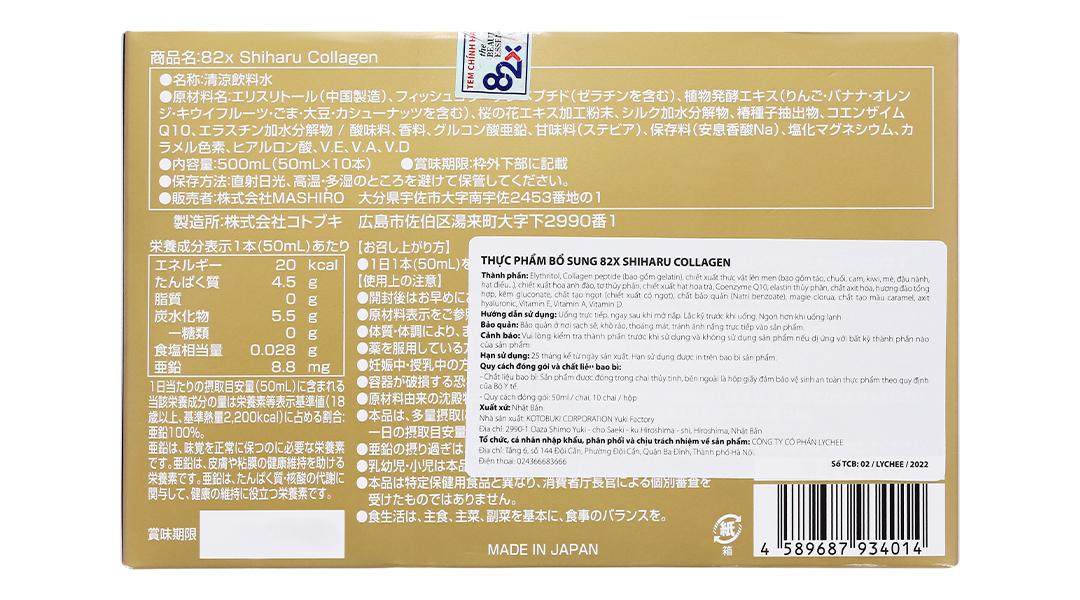 Trải qua hơn 20 năm nỗ lực nghiên cứu và phát triển bởi các chuyên gia, các nhà khoa học hàng đầu Nhật Bản trong lĩnh vực làm đẹp, 82X ra đời như một bước tiến vượt bậc về sản phẩm chăm sóc, trẻ hóa da từ bên trong. Ngay từ khi ra mắt, thương hiệu nước uống đẹp da 82X của Công ty Mashiro đã tạo nên một cơn sốt mạnh mẽ ở Nhật Bản và các nước Châu Á lân cận, trong vòng 8 phút lại có 1 chai 82X được tiêu thụ trên thị trường.