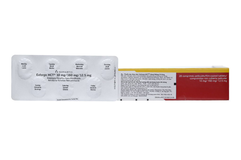 – Thận trọng khi sử dụngĐọc kỹ hướng dẫn sử dụng trước khi dùng. Nếu cần thêm thông tin, xin hỏi ý kiến bác sĩ. Thuốc này chỉ dùng theo đơn của bác sĩ. Độc tính loại D đối với phụ nữ có thai Sử dụng các thuốc tác động trên hệ renin-angiotensin trong 3 tháng giữa và 3 tháng cuối của thai kỳ làm giảm chức năng thận của thai, làm tăng bệnh tật và tử vong ở thai nhi và trẻ sơ sinh. Kết quả thiếu ối có thể liên quan với giảm sản phổi và biến dạng xương ở thai nhi. Các tác dụng phụ tiềm ẩn ở trẻ sơ sinh bao gồm giảm sản sọ, vô niệu, hạ huyết áp, suy thận và tử vong. Khi phát hiện có thai, phải ngừng Exforge HCT càng sớm càng tốt. Hạ huyết áp ở bệnh nhân giảm thể tích hoặc mất muối Hạ huyết áp quá mức, bao gồm hạ huyết áp thế đứng đã được ghi nhận ở 1,7% bệnh nhân được điều trị bằng liều tối đa của Exforge HCT (10/320/25 mg) so với 1,8% bệnh nhân dùng valsartan/HCTZ (320/25mg), 0,4% bệnh nhân dùng amlodipine/valsartan (10/320 mg) và 0,2% bệnh nhân dùng HCTZ/amlodipin (25/10 mg) trong một thử nghiệm có đối chứng trên những bệnh nhân tăng huyết áp trung bình đến nặng không có biến chứng. ở bệnh nhân có hệ renin-angiotensin được hoạt hóa nhựa bệnh nhân dùng liều cao thuốc lợi tiểu bị giảm thể tích hoặc mất muối, hạ huyết áp triệu chứng có thể xảy ra ở bệnh nhân dùng thuốc chẹn thụ thể angiotensin. Cần điều chỉnh tình trạng này trước khi sử dụng Exforge HCT. Exforge HCT chưa được nghiên cứu ở bệnh nhân bị suy tim, nhồi máu cơ tim gần đây hoặc ở những bệnh nhân trải qua phẫu thuật hoặc thẩm phân. Bệnh nhân suy tim hoặc sau nhồi máu cơ tim được dùng valsartan thường có giảm huyết áp một chút, nhưng việc ngừng điều trị do tiếp tục hạ huyết áp triệu chứng thường không cần thiết khi tuân thủ hướng dẫn dùng thuốc. Trong các thử nghiệm có đối chứng ở bệnh nhân suy tim, tỷ lệ hạ huyết áp ở bệnh nhân được điều trị bằng valsartan là 5,5% so với 1.8% ở bệnh nhân được điều trị bằng giả dược. Trong thử nghiệm về valsartan trong nhồi máu cơ tim cấp (VALIANT), hạ huyết áp ở bệnh nhân sau nhồi máu cơ tim dẫn đến ngừng điều trị vĩnh viễn xảy ra ở 1,4% bệnh nhân được điều trị bằng valsartan và 0,8% bệnh nhân được điều trị bằng captopril. Vì sự giãn mạch gây ra bởi amlodipin khởi phát từ từ, hiếm khi có báo cáo hạ huyết áp cấp sau khi dùng đường uống. Không bắt đầu điều trị bằng Exforge HCT ở bệnh nhân bị hẹp động mạch chủ hoặc hẹp van 2 lá hoặc bệnh cơ tim phì đại tắc nghẽn. Nếu xảy ra hạ huyết áp quá mức với Exforge HCT, nên đặt bệnh nhân ở tư thế nằm ngửa và nếu cần thiết, truyền tĩnh mạch dung dịch muối đẳng trương. Đáp ứng hạ huyết áp thoáng qua không phải là chống chỉ định đối với điều trị thêm mà thường có thể tiếp tục không gặp khó khăn khi huyết áp đã ổn định. Tăng đau thắt ngực và/hoặc nhồi máu cơ tim Tăng đau thắt ngực và nhồi máu cơ tim cấp có thể xuất hiện sau liều khởi đầu hoặc tăng liều Amlodipin, đặc biệt trên các bệnh nhân tắc nghẽn động mạch vành nặng. Suy giảm chức năng thận Những thay đổi về chức năng thận bao gồm cả suy thận cấp có thể được gây ra bởi các loại thuốc ức chế hệ renin-angiotensin và thuốc lợi tiểu. Những bệnh nhân có chức năng thận phụ thuộc một phần vào hoạt động của hệ renin-angiotensin (ví dụ bệnh nhân bị hẹp động mạch thận, bệnh thận mạn tính, suy tim sung huyết nặng hoặc giảm thể tích) có thể đặc biệt có nguy cơ phát triển suy thận cấp khí dung Exforge HCT. cần theo dõi định kỳ chức năng thận ở những bệnh nhân này. Phải xem xét rút lại hoặc ngừng điều trị ở những bệnh nhân bị giảm chức năng thận có ý nghĩa lâm sàng khi dùng Exforge HCT. Phải tránh sử dụng thuốc chẹn thụ thể angiotensin (ARB) – bao gồm cả valsartan – hoặc thuốc ức chế enzym chuyển angiotensin (ACEI) với aliskiren ở bệnh nhân bị suy thận nặng (tốc độ lọc của cầu thận < 30ml/phút) (xem phần TƯƠNG TÁC THUỐC, tiểu mục sự phong bế kép hệ renin-angiotensin – RAS). Suy tim Exforge HCT chưa được nghiên cứu ở bệnh nhân suy tim. Các nghiên cứu với amlodipin: Nói chung, cần theo dõi sát khi sử dụng thuốc chẹn kênh calci, bao gồm theo dõi chặt chẽ tình trạng dịch, điện giải, chức năng thận và huyết áp ở bệnh nhân suy tim. Amlodipin (5-10 mg/ngày) đã được nghiên cứu trong một thử nghiệm có đối chứng với giả dược ở 1.153 bệnh nhân suy tim độ III hoặc độ IV theo phân loại của Hiệp hội Tim New York (NYHA) khi đang dùng các liều ồn đính của thuốc ức chế enzym chuyển angiotensin (ACE), digoxin và thuốc lợi tiểu. Cần theo dõi ít nhất 6 tháng, trung bình khoảng 14 tháng. Không có tác dụng bất lợi nói chung về tỷ lệ sống con hoặc tỷ lệ mắc bệnh tim (như được xác định bởi loạn nhịp đe dọa tính mạng, nhồi máu cơ tim cấp hoặc nhập viện do tình trạng suy tim