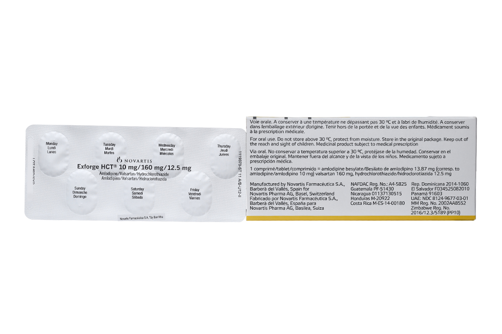 Để thuận tiện, những bệnh nhân đang dùng valsartan, amlodipine và HCTZ có thể chuyển từ dạng viên riêng rẽ sang Exforge HCT chứa cùng liều của các thành phần này. Bệnh nhân có các phản ứng phụ làm hạn chế liều dùng của bất kỳ sự kết hợp kép các thành phần của Exforge HCT có thể chuyển sang Exforge HCT chứa một liều thấp hơn của thành phần đó để đạt được sự giảm huyết áp tương tự.