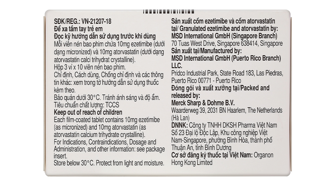ATOZET 10 mg/10 mg: Hộp 3 vỉ x 10 viên nén bao phim.