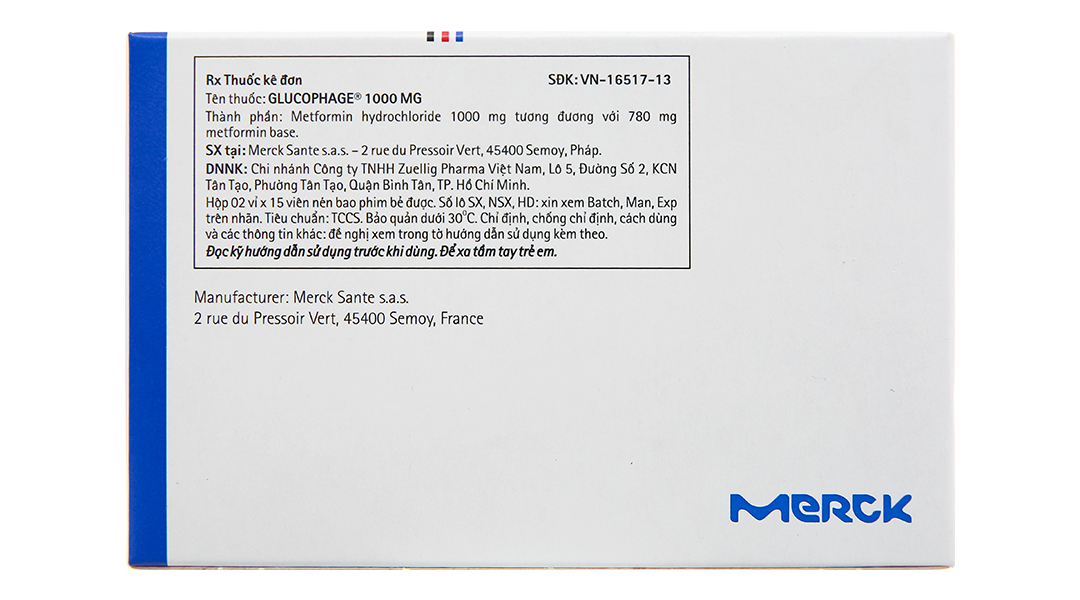 – Thận trọng khi sử dụngNhiễm acid lactic Nhiễm acid lactic là một biến chứng về chuyển hóa hiếm gặp nhưng nghiêm trọng (tỷ lệ tử vong cao nếu không điều trị tức thì), có thể xảy ra do tích lũy metformin. Những trường hợp báo cáo về nhiễm acid lactic ở những bệnh nhân dùng metformin xảy ra chủ yếu ở bệnh nhân đái tháo đường bị suy thận nặng hoặc tình trạng xấu đi cấp tính chức năng thận. Có thể và nên giảm tỷ lệ nhiễm acid lactic cũng bằng cách đánh giá các yếu tố nguy cơ có liên quan khác như đái tháo đường kiểm soát kém, nhiễm ceton, nhịn đói kéo dài, mất nước (tiêu chảy nặng hoặc nôn ói), uống rượu quá mức, suy gan và bất kỳ tình trạng nào liên quan đến thiếu oxy (như suy tim cấp, nhồi máu cơ tim cấp). Chẩn đoán: Đặc điểm của nhiễm acid lactic là hơi thở có mùi acid, đau bụng và giảm thân nhiệt sau đó là hôn mê. Kết quả xét nghiệm chẩn đoán là giảm pH máu, nồng độ lactate huyết tương trên 5 mmol/L và tăng khoảng anion và tỷ lệ lactate/pyruvate. Trong trường hợp nhiễm acid lactic, bệnh nhân cần nhập viện ngay lập tức (xem mục Quá liều). Bác sĩ cần cảnh báo cho bệnh nhân về nguy cơ và các triệu chứng nhiễm acid lactic. Chức năng thận Vì metformin được đào thải qua thận, nên xác định độ thanh thải creatinin hoặc tốc độ lọc cầu thận ước lượng trước khi bắt đầu điều trị và thường xuyên sau đó: + Ít nhất hàng năm ở bệnh nhân có chức năng thận bình thường, + Ít nhất hai đến bốn lần mỗi năm ở bệnh nhân có độ thanh thải creatinin ở mức dưới của giới hạn bình thường và bệnh nhân lớn tuổi. Chống chỉ định metformin trong trường hợp CrCI < 45 mL/phút (eGFR < 45 ml/phút/1,73 m2) (xem mục Chống chỉ định). Chức năng thận bị suy giảm ở người lớn tuổi là thường xuyên và không có triệu chứng. Nên đặc biệt thận trọng ở những trường hợp mà chức năng thận có thể bị suy giảm, ví dụ như trong trường hợp mất nước, hoặc khi bắt đầu điều trị hạ huyết áp hay thuốc lợi tiểu và khi bắt đầu điều trị với thuốc kháng viêm không steroid (NSAID). Trong những trường hợp này, khuyến cáo kiểm tra chức năng thận trước khi bắt đầu điều trị với metformin. Chức năng tim Bệnh nhân suy tim dễ có nguy cơ giảm oxy và suy thận, ở bệnh nhân suy tim mạn ổn định, metformin có thể được sử dụng với sự theo dõi thường xuyên chức năng tim và thận. Chống chỉ định metformin ở bệnh nhân suy tim cấp và không ổn định (xem mục Chống chỉ định). Sử dụng các chất cản quang có chứa iod Sử dụng các chất cản quang có chứa iod bằng đường tĩnh mạch trong các xét nghiệm X-quang có thể dẫn đến suy thận. Điều này có thể gây ra sự tích tụ metformin và làm tăng nguy cơ nhiễm acid lactic, ở bệnh nhân có eGFR > 60 mL/phút/1,73 m2, phải ngưng sử dụng metformin trước khi xét nghiệm hoặc tại thời điểm xét nghiệm và không được sử dụng lại cho tới ít nhất 48 giờ sau đó, và chỉ sau khi chức năng thận đã được đánh giá lại và cho thấy không trở nên xấu hơn (xem mục Tương tác). Ở bệnh nhân suy thận trung bình (eGFR trong khoảng 45 và 60 mL/phút/1,73 m2), phải ngưng metformin 48 giờ trước khi sử dụng chất cản quang có chứa iod và không được sử dụng lại cho đến ít nhất 48 giờ sau đó và chỉ sau khi chức năng thận đã được đánh giá lại và cho thấy không trở nên xấu hơn (xem mục Tương tác). Phẫu thuật Phải ngưng metformin 48 giờ trước khi phẫu thuật theo chương trình có gây mê toàn thân, gây tê ngoài màng cứng hoặc tủy sống. Việc điều trị có thể bắt đầu lại không sớm hơn 48 giờ sau phẫu thuật hoặc sau khi bắt đầu lại sự nuôi dưỡng qua đường tiêu hóa và chỉ sau khi chức năng thận đã được trở lại bình thường. Trẻ em Chẩn đoán đái tháo đường týp 2 phải được thực hiện trước khi bắt đầu điều trị bằng metformin. Không phát hiện ảnh hưởng của metformin lên sự tăng trưởng và dậy thì trong các nghiên cứu lâm sàng có đối chứng trong một năm nhưng không có dữ liệu dài hạn cho các giai đoạn cụ thể này. Do đó nên theo dõi cẩn thận tác động của metformin lên những thông số này ở trẻ em được điều trị với metformin, đặc biệt ở trẻ trước dậy thì. Trẻ em từ 10 đến 12 tuổi Chỉ có 15 đối tượng trong độ tuổi từ 10 đến 12 tuổi tham gia vào các nghiên cứu lâm sàng có đối chứng được thực hiện ở trẻ em và thanh thiếu niên. Mặc dù hiệu quả và độ an toàn của metformin ở những trẻ em này không khác biệt với hiệu quả và độ an toàn trên trẻ em lớn hơn và thanh thiếu niên, khuyến cáo đặc biệt thận trọng khi kê đơn cho trẻ em trong độ tuổi từ 10 đến 12 tuổi. Những lưu ý khác Tất cả bệnh nhân nên tiếp tục chế độ ăn uống của họ, với sự phân bổ đều đặn lượng carbohydrate ăn vào trong ngày. Những bệnh nhân quá cân nên tiếp tục chế độ ăn uống hạn chế năng lượng. Các xét nghiệm thông thường để theo dõi b