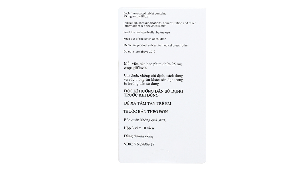 Trong các nghiên cứu lâm sàng có đối chứng trên người khỏe mạnh, liều đơn lên tới 800mg Empagliflozin được dung nạp tốt.