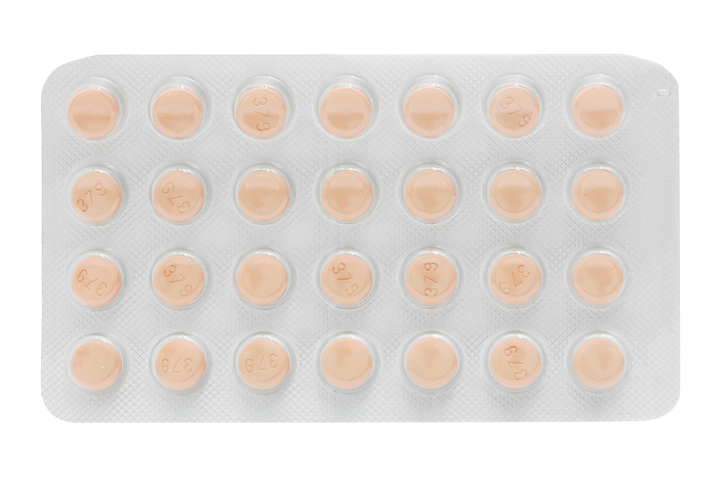 Femoston conti là viên nén bao phim hình tròn, hai mặt lồi, màu hồng cam, có khắc số “379” ở một mặt.