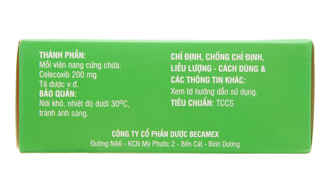 – Thải trừ: Nửa đời thải trừ trong huyết tương của Celecoxib sau khi uống là 11 giờ và hệ số thanh thải trong huyết tương khoảng 500ml/phút. Nửa đời của thuốc kéo dài ở người suy thận và suy gan. Celecoxib được chuyển hoá trong gan thành các chất chuyển hoá không có hoạt tính bởi isoenzym CYP4502C9. Celecoxib thải trừ khoảng 27% trong nước tiểu và 57% trong phân, dưới 3% liều được thải trừ không thay đổi.