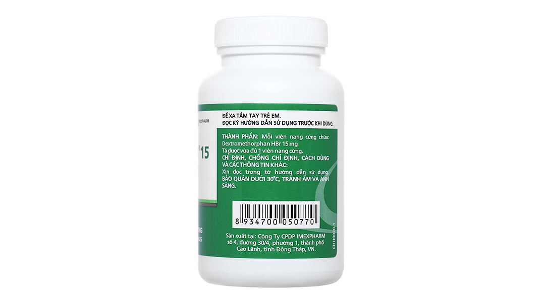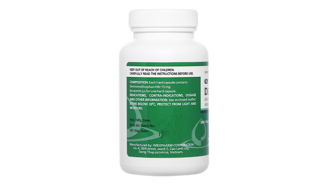 - Mỗi viên nang cứng chứa: Dextromethorphan HBr 15mg