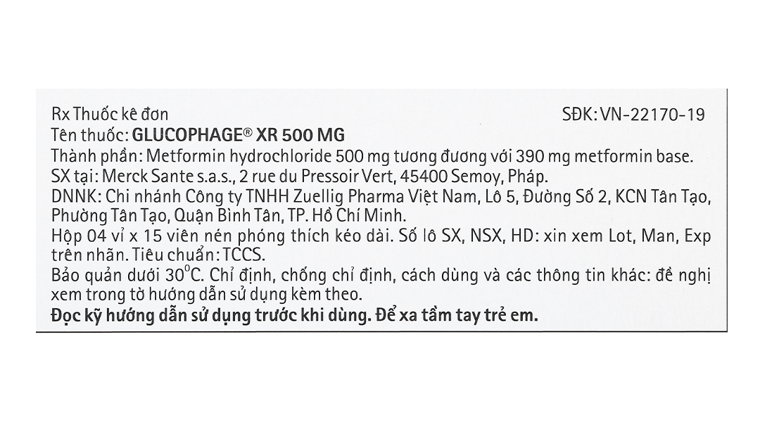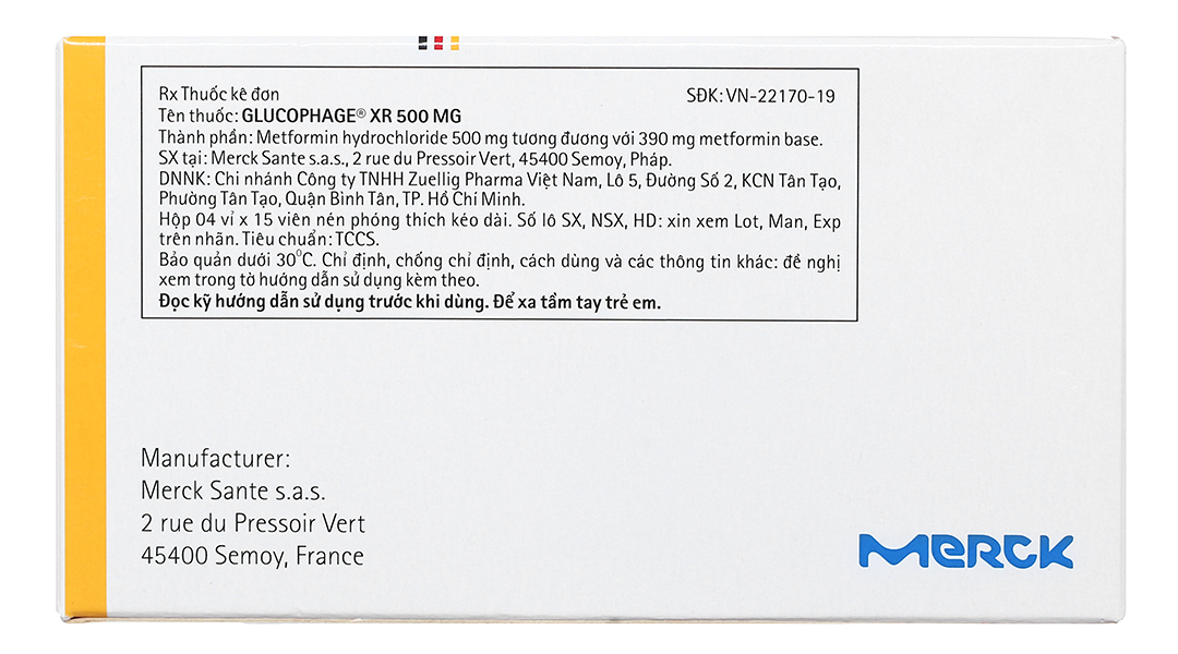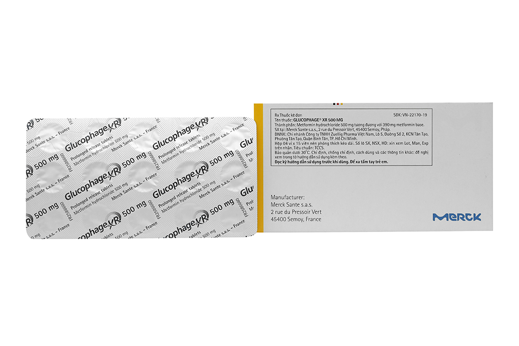 Glucophage XR 500mg trị đái tháo đường tuýp 2 (4 vỉ x 15 viên)