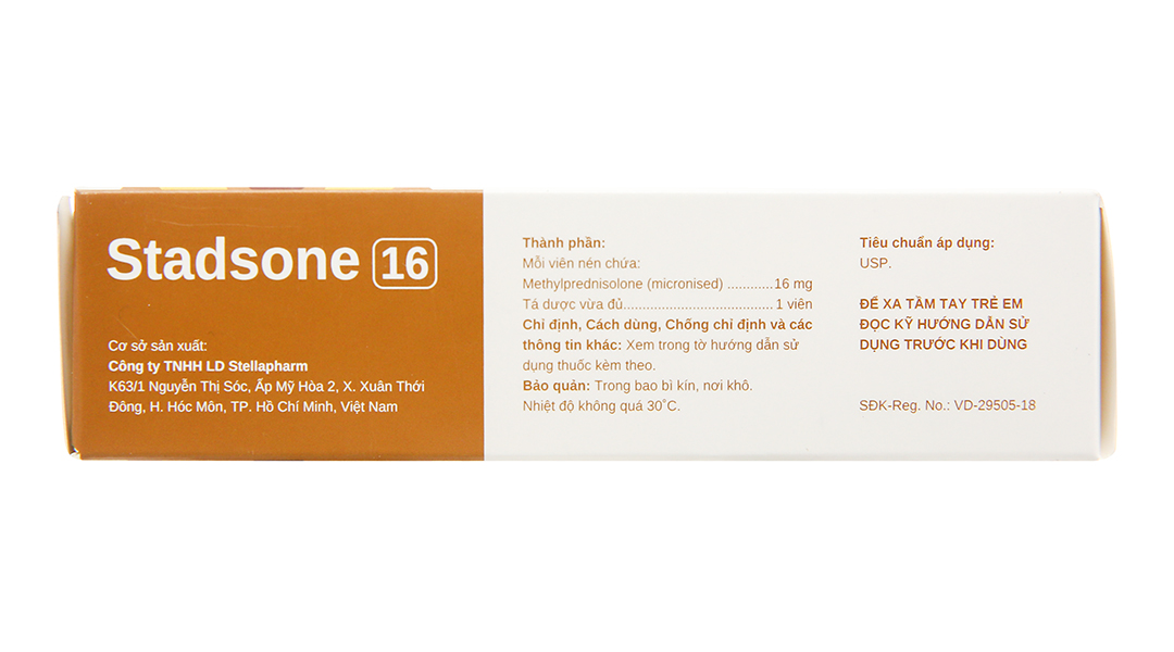 Hoạt chất: Methylprednisolon (vi tinh thể) 16mg.