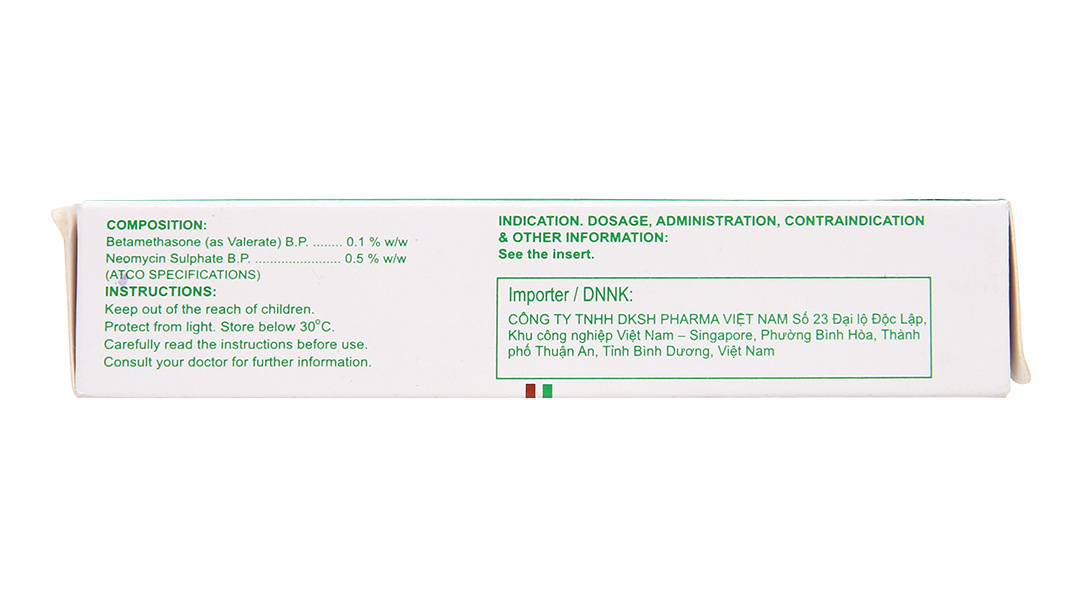 Betamethasone valerate là một corticosteroid có tính kháng viêm và ức chế miễn dịch tại chỗ. Tương tự các hormon steroid khác, betamethasone valerate tác động bằng cách kiểm soát mức độ tổng hợp các protein. Neomycin có tính kháng khuẩn với các vi khuẩn nhạy cảm bao gồm phần lớn các vi khuẩn gram dương cũng như gram âm, neomycin hiệu quả trên các bệnh da nhiễm khuẩn.