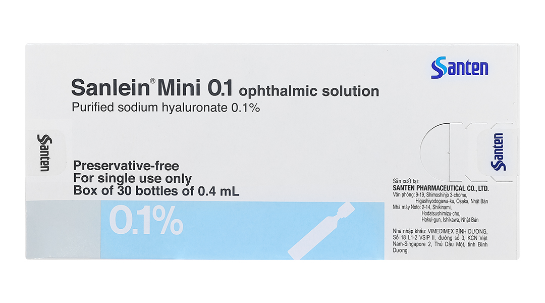 Dung dịch nhỏ mắt Sanlein Mini 0.1% trị rối loạn biểu mô kết – giác mạc (30 ống x 0.4ml)