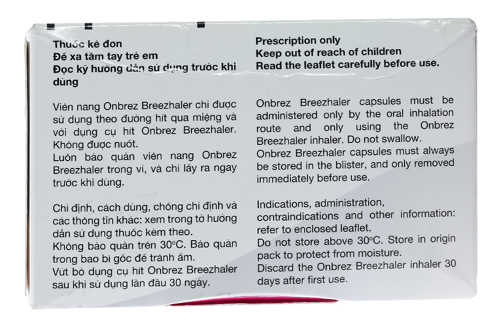 Viên nang Onbrez Breezhaler chỉ được sử dụng theo đường hít qua miệng và với dụng cụ hít Onbrez Breezhaler. Không được nuốt.
