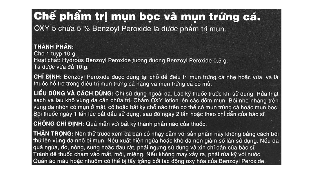 Kem Oxy 5 hỗ trợ điều trị mụn bọc, mụn trứng cá tuýp 10g