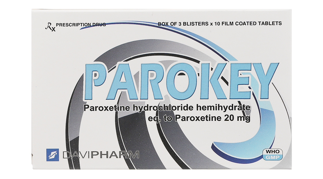 Mỗi viên nén bao phim PAROKEY 20mg chứa: Paroxetin hydroclorid hemihydrat tương đương Paroxetin 20mg.