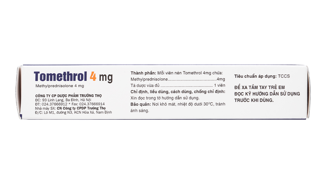 Mỗi viên nén Tomethrol 4mg chứa: Methylprednisolon 4mg.