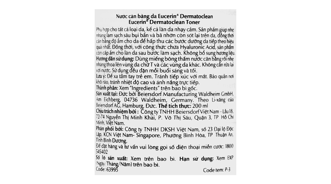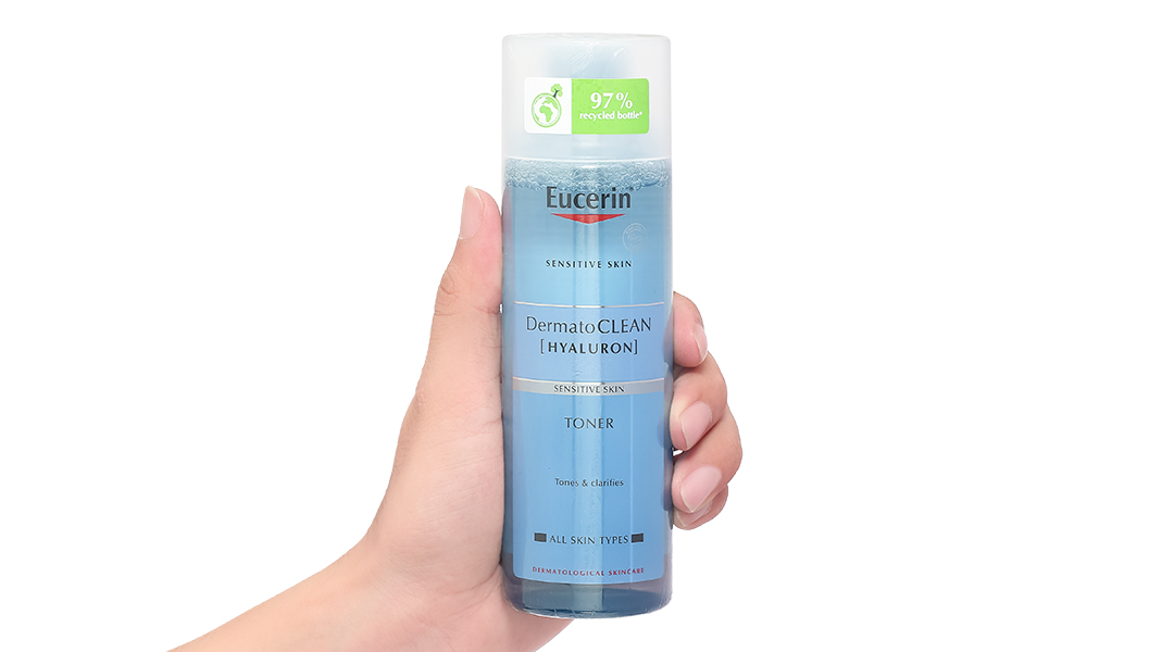 - Toner Eucerin DermatoCLEAN Hyaluron là sản phẩm thuộc thương hiệu mỹ phẩm nổi tiếng Eucerin của Đức, sản phẩm không chỉ giúp làm sạch sâu bụi bẩn và bã nhờn mà còn cân bằng độ ẩm, mang lại làn da mềm mại và săn chắc.