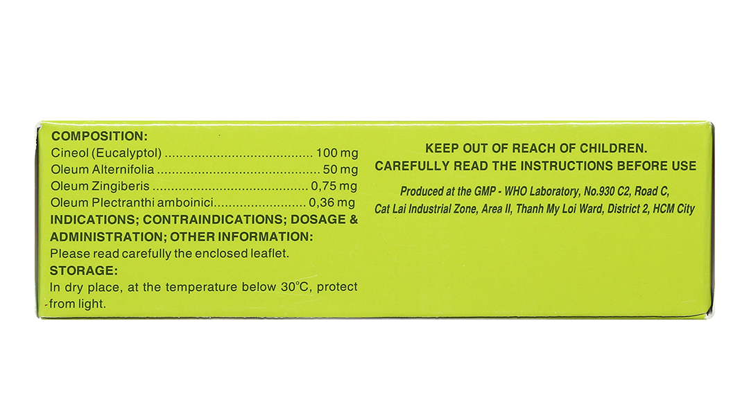 Hoạt chấttinh dầu Gừng, Eucalyptol, tinh dầu Tần, tinh dầu Tràm trà
