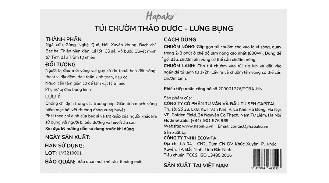 Túi chườm thảo dược lưng – bụng Hapaku (110cm x 20cm)