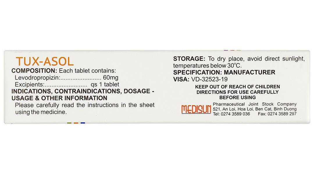 - Thành phần dược chất: Levodropropizin 60 mg.