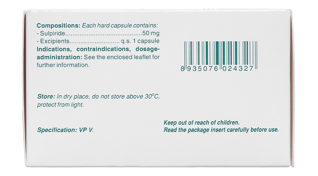 Sulpiride được hấp thu trong khoảng dạ dày – ruột, sinh khả dụng thấp, nồng độ sulpirid đạt được từ 3 – 6 giờ sau khi uống 1 liều, thuốc phân bố vào tất cả các mô nhưng qua hàng rào máu não rất ít, liên kết với protein huyết khoảng 40%, thời gian bán thải của thuốc trong máu khoảng 8 – 9 giờ. Thuốc được đào thải qua nước tiểu và phân chủ yếu dưới dạng không biến đổi.