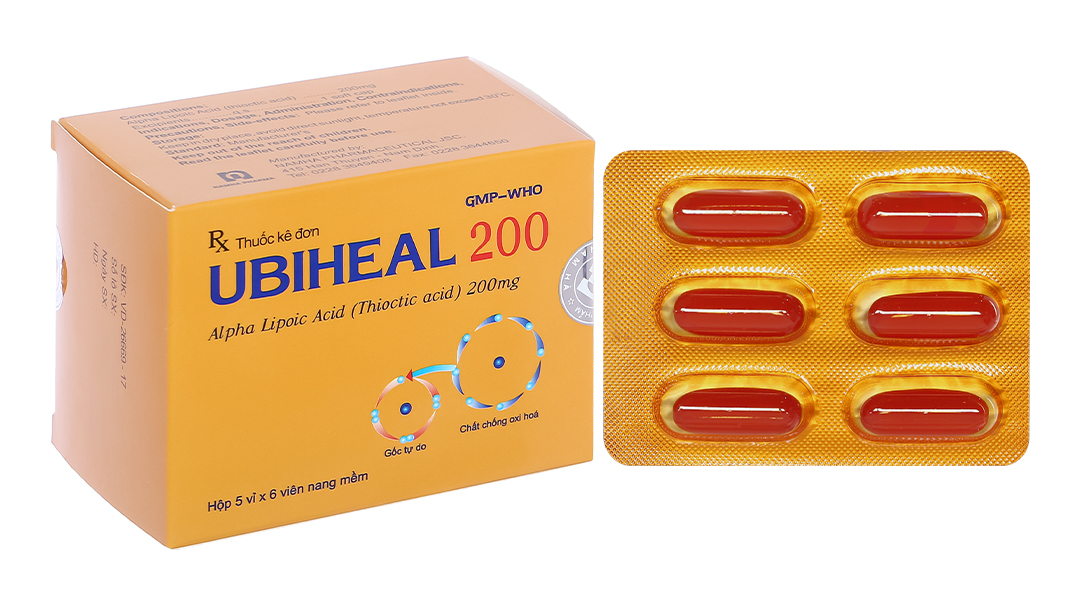 Ubiheal 200 trị rối loạn cảm giác do bệnh thần kinh đái tháo đường (5 vỉ x 6 viên)